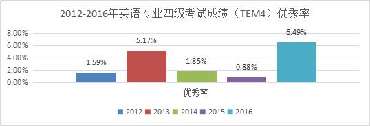 附件:2012-2016年英语专业四级考试成绩(TEM4)优秀率