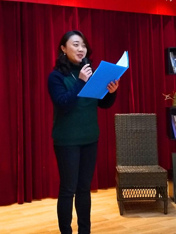 大赛结束前,岳中方老师作为校宣传部副部长、决赛评委做了简短的点评,她分享了自己作为上届“先锋诗坛”诗会参赛者的朗读心得,呼吁大家都参与到朗读之中,成为会欣赏美的读书人。