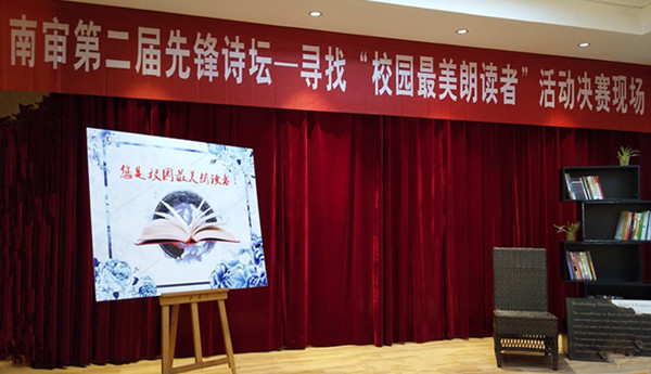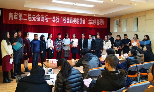 12月13日下午,由校语言文字工作委员会主办;校普通话培训测试站、校工会、润泽先锋书店承办;澄园书院科学技术协会、润园书院学习支持与生涯发展中心办公室、泽园书院校园文化中心成才规划部、沁园书院学生学习与成长指导中心、南审读书人、南社诗刊、蓝莓工作室、荻思文学社、图书馆学生管理委员会、红帆船话剧社协办的第二届先锋诗坛——“寻找校园最美朗读者”活动在润泽先锋书店万竹堂顺利进行,校语委主任董必荣副校长、校语委办副主任刘顺、 污污漫 王军副院长亲临决赛现场。