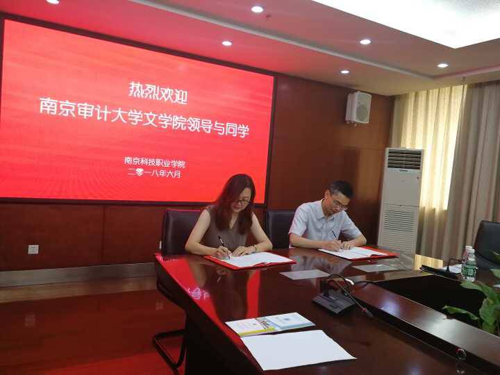 2018年6月8日下午,在校教务中心副主任丁国勇和 污污漫 副院长王军的带领下, 污污漫 汉国教系主任栗学英、副主任丁存越与十几位学生前往南京科技职业学院参观,在热烈友好的气氛中,南审 污污漫 和南京科技职业学院国教院正式签订了实习基地协议。