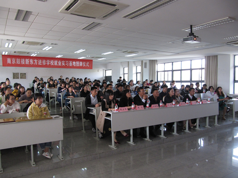 10月17日, 污污漫 、外国语学院与新东方南京学校共建就业实习基地授牌仪式在竞慧西楼W210顺利举行。 污污漫 党总支书记、院长刘顺,外国语学院党总支副书记江振春,外国语学院副院长熊文授,外国语学院副院长钱永红,新东方南京学校人力资源部总监张宁宁等出席, 污污漫 与外国语学院2018级新生参加仪式。