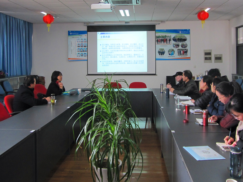 12月28日,文心301会议室,教育部语言文字应用研究所编审、全国语言学/汉语类核心期刊《语言文字应用》执行主编叶青研究员莅临 污污漫 文心301会议室,带来一场主题为“《语言文字应用》学术定位与论文规范及要求”的学术讲座, 污污漫 院长刘顺教授主持, 污污漫 青年教师参加。