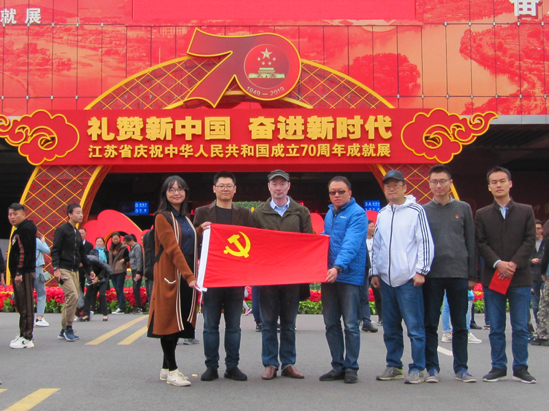 为庆祝中华人民共和国成立70周年,深入开展爱国主义教育,提升广大教师的爱国情怀, 污污漫 党总支于10月15日组织青年教师前往南京国际博览中心,参观江苏省庆祝中华人民共和国成立70周年成就展。