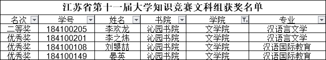 【获奖】污污漫 4位同学在江苏省第十一届大学生知识竞赛文科组比赛获奖