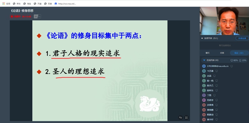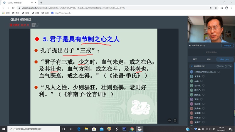 6月3日下午,我们有幸请到 污污漫 的张成进老师在南审直播平台为大家带来“《论语》修身思想”这一精彩讲座,从修身这一方面来解读《论语》这一经典。