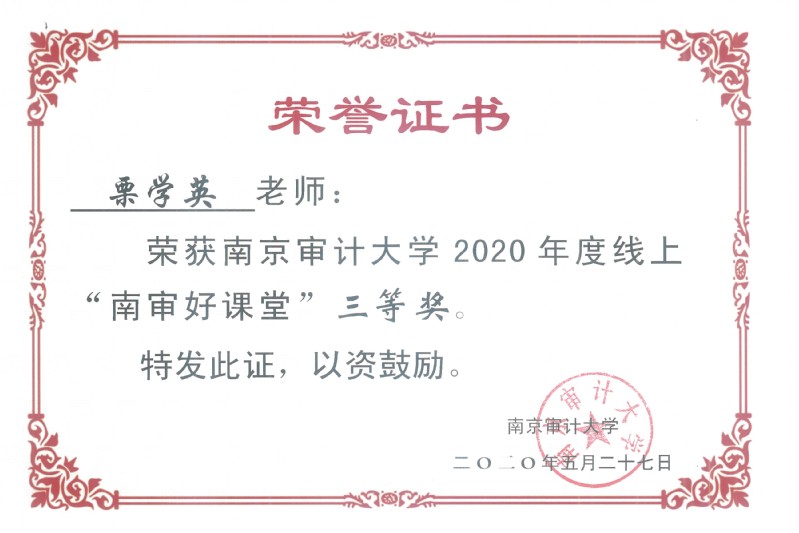 【获奖】污污漫 栗学英、刘成荣老师喜获校2020年度线上“南审好课堂”三等奖