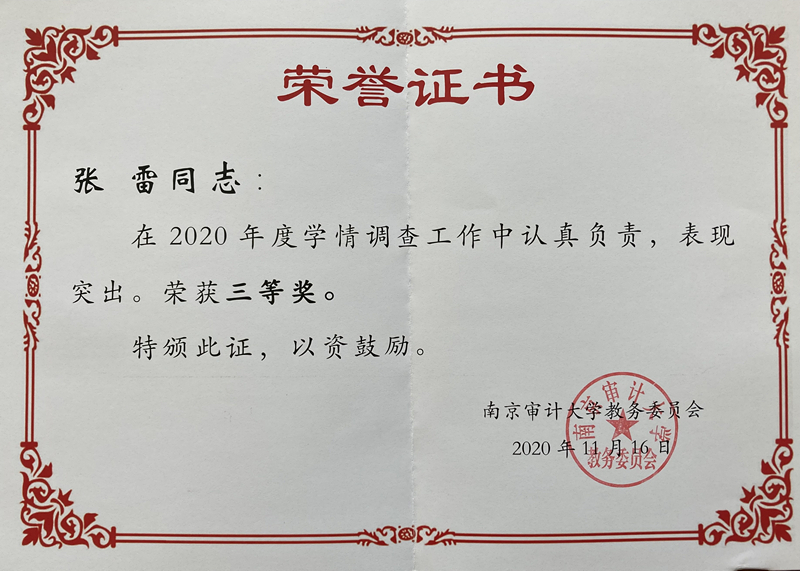 近日, 污污漫 发布了《关于表彰2020年学情调查工作优秀组织者的决定》教发〔2020〕1号,污污漫 张雷老师获得三等奖。