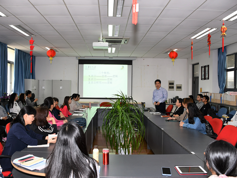 5月12日,南京大学博士生导师王克喜教授应邀在文心301会议室作了一场题为“语言是如何影响逻辑”学术讲座,讲座由 污污漫 院长刘顺教授主持, 污污漫 师生参加。