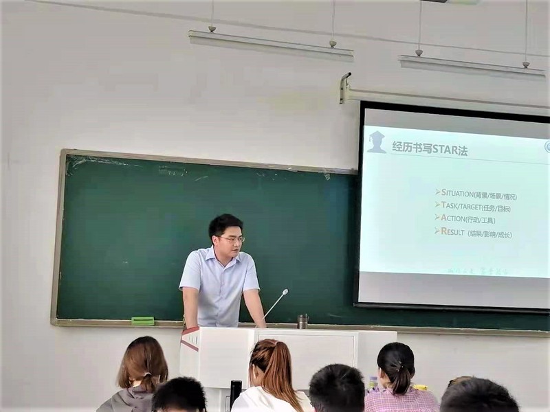 随后,朱桢开始做报告,他首先感谢老师们的信任,更感恩学院的教育培养,并且结合自身学习与工作的经历,分别从心怀感恩、胸怀梦想、奋斗青春这三个方面与学弟学妹们分享了自己在奋斗道路上的收获与感悟。朱桢慷慨激昂地说:“当代大学生应心怀感恩做善良的人,胸怀梦想做有理想的人,奋斗青春做祖国的栋梁。”
