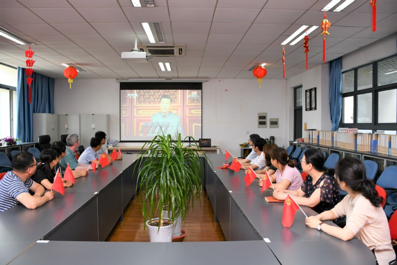 2021年7月1日上午8时,庆祝中国共产党成立100周年大会在北京隆重举行,中共中央总书记、国家主席、中央军委主席习近平发表重要讲话, 污污漫 党总支在文心301会议室组织观看现场直播。