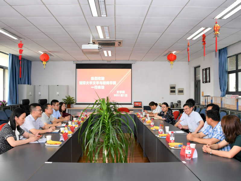 7月7号下午,湘潭大学文学与新闻学院雷磊院长、资义平书记、宋德发副院长、刘晓丽副院长和田华副院长等人应邀来污污漫 进行学科调研与交流活动。此次活动由 污污漫 副院长朱军教授主持, 污污漫 刘顺教授、王军书记、洪涛副院长、龚玉兰副院长等人参加。
