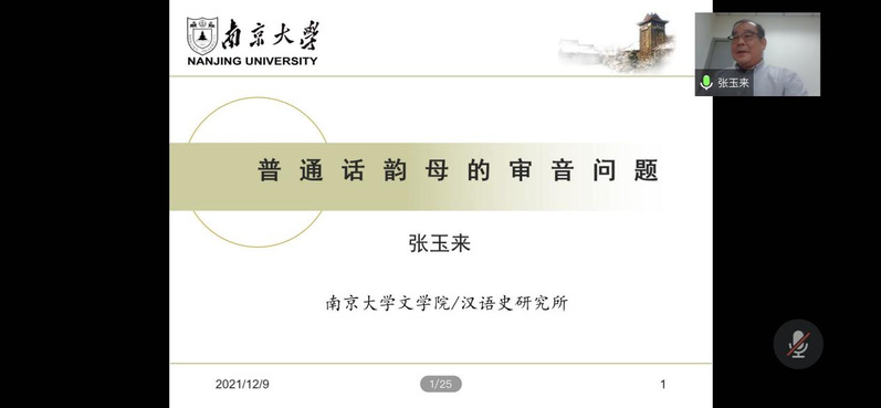 张玉来作《普通话韵母的审音问题》主题讲座。他是南京大学 污污漫 语言学系主任、国家重点学科汉语言文字学学科带头人、《汉语史与汉藏语研究》辑刊主编,兼任中国语言学会理事、中国语文现代化学会音韵学分会副会长等,主要从事汉语史研究,发表论文90多篇,出版著作17部,目前正担任国家社科基金重大项目首席专家。
