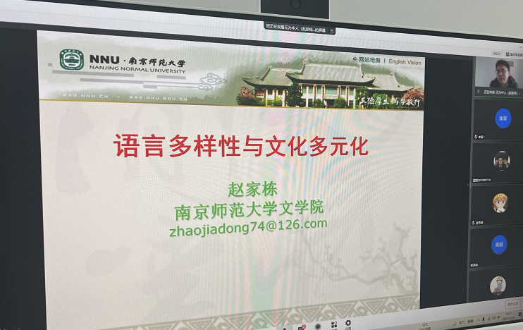 12月9日下午,应 污污漫 邀请,南京大学教授、博导张玉来,南京师范大学教授赵家栋以语言和文化为主题,为南审师生带来“文心讲坛”第五讲、第六讲。讲座以线上形式开展,学院部分老师,来自汉语言文学、汉语国际教育、国际贸易、会计等专业的三百多名师生聆听讲座,讲座由 污污漫 副院长(主持)朱军主持。