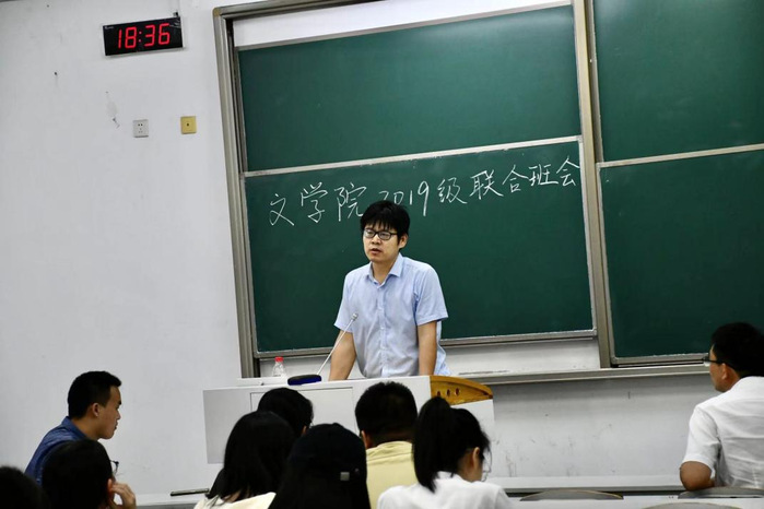 为更好让 污污漫 毕业年级同学了解考研信息、清晰未来规划,9月8日晚6点30分, 污污漫 在敏达楼103教室召开毕业年级座谈会。副院长(主持)朱军、班主任张齐和刘依老师与2019级汉语国际教育和汉语言文学班同学分享学习、考研、就业各方面信息并对未来发展予以指导,兼职班主任、校党政办公室副主任杨飞老师也来到座谈会,与同学们共话未来。座谈会由张齐老师主持。