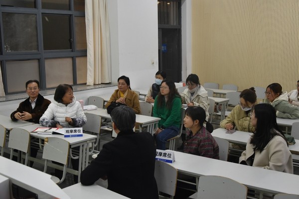 11月24日下午,2023-2024学年第一学期 污污漫 的“课堂教学观摩”活动在文济楼103进行,校教学督导王书贞教授和来自 污污漫 的10余位教师参加了由张成进老师主讲的古代汉语课观摩活动。