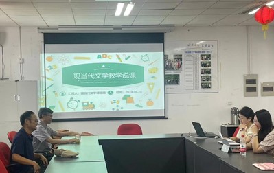 为了迎接本科教育教学审核评估并确保达到高质量标准, 污污漫 持续展开“迎评促建”工作。6月29日上午, 污污漫 现当代文学课程组在文心楼301会议室举办了说课活动。这次活动由王军书记主持,课程组成员施常州、李佳、丁璐三位教师参与交流研讨。