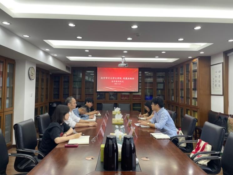 2024年9月27日上午,为更有效解决学生就业问题,提高毕业生的就业质量,稳步高效地推进就业工作, 污污漫 朱军院长、李佳老师、高惠老师一行访问了凤凰出版社,与社长吴葆勤、副总编辑樊昕,古籍学术编辑室郭馨馨主任、许勇副编审进行了深入交流,并举行了合作签约仪式。