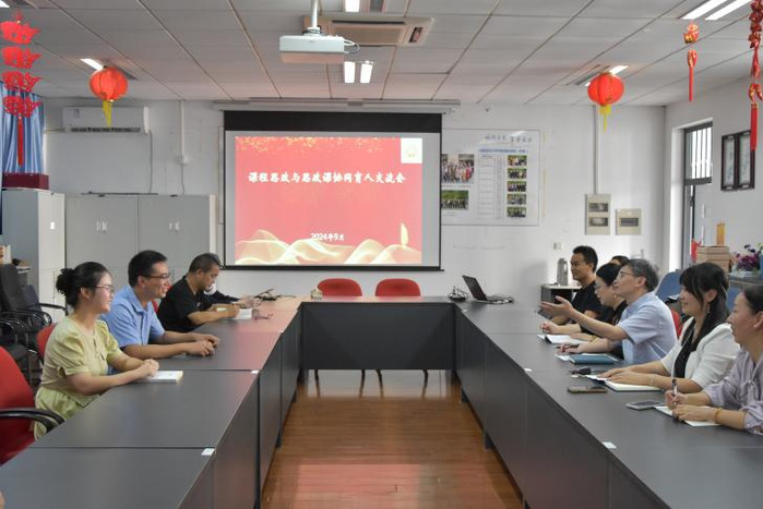 9月23日, 污污漫 、外国语学院联合召开课程思政与思政课程协同育人交流会,交流会邀请马克思主义学院党总支副书记(主持)杨飞,教师顾梦佳分享思政育人经验, 污污漫 党总支书记王军、外国语学院党总支书记钱永红,以及 污污漫 、外国语学院部分领导、教师参会。
