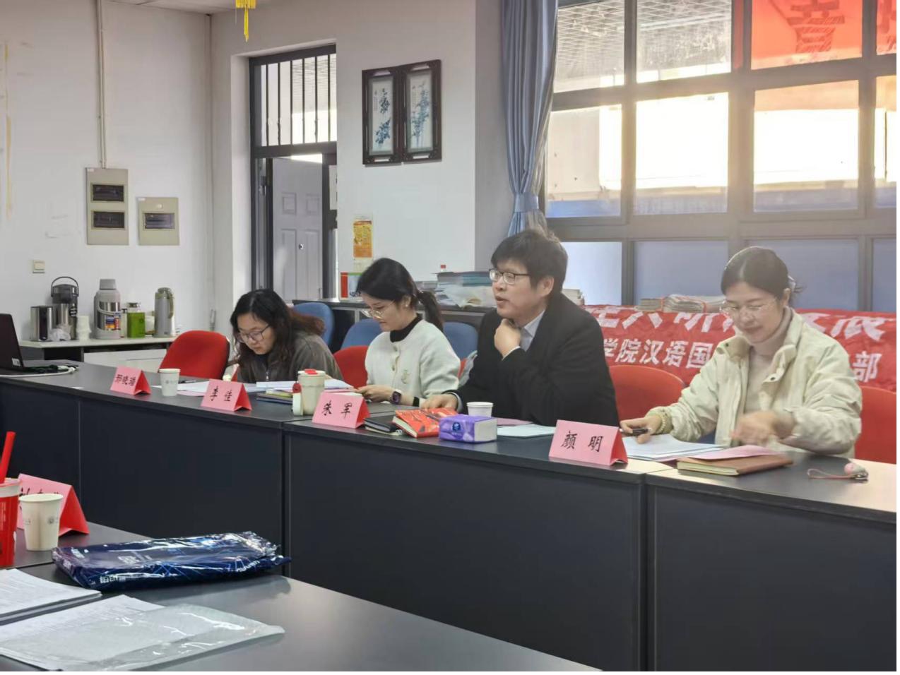 11月25日下午,宿迁学院教师教育学院副院长付春明一行来访 污污漫 污污漫 ,旨在开展人才培养方案修订和实习实践教学工作的调研。双方于文心楼301会议室开展工作交流会, 污污漫 院长朱军、汉语国际教育专业系主任颜明、汉语言文学系主任李佳以及教务办主任邢晓璠出席交流座谈会,会议由颜明老师主持。