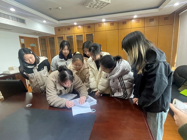 接着,郭馨馨主任与张堃老师对同学们进行了编辑校对工作的培训和指导,她们介绍了校对工作的具体事项及需要注意的细节,耐心指导同学们进行实操。张堃老师教授了折校法与点校法,同学们现场实践了两种校对方法。最后,几位编辑老师对同学们的实习任务进行了分配,并就同学们提出的疑问进行了解答。